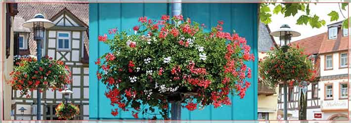Auch rund um den Marktplatz sorgt der Verein jedes Jahr für ein blühendes Stadtbild. Dreizehn Blumenampeln konnten zwischenzeitlich angeschafft werden.
